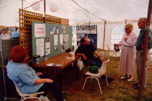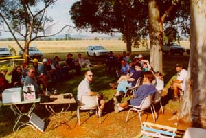 An information marquee had been setup to provide the public the opportunity to speak to experts in radio astronomy and to view displays about the history of the Parkes Telescope. The re-created control desk from the film "The DISH" was a popular talking point. Popular also, was the UWS SETI Southern SERENDIP display manned by Frank Stootman and Carol Oliver. The Parkes Staff Club organised the barbeques, with many family members helping out. Over 1000 steak, sausage and rissole sandwiches were sold as well as over 1000 drinks.